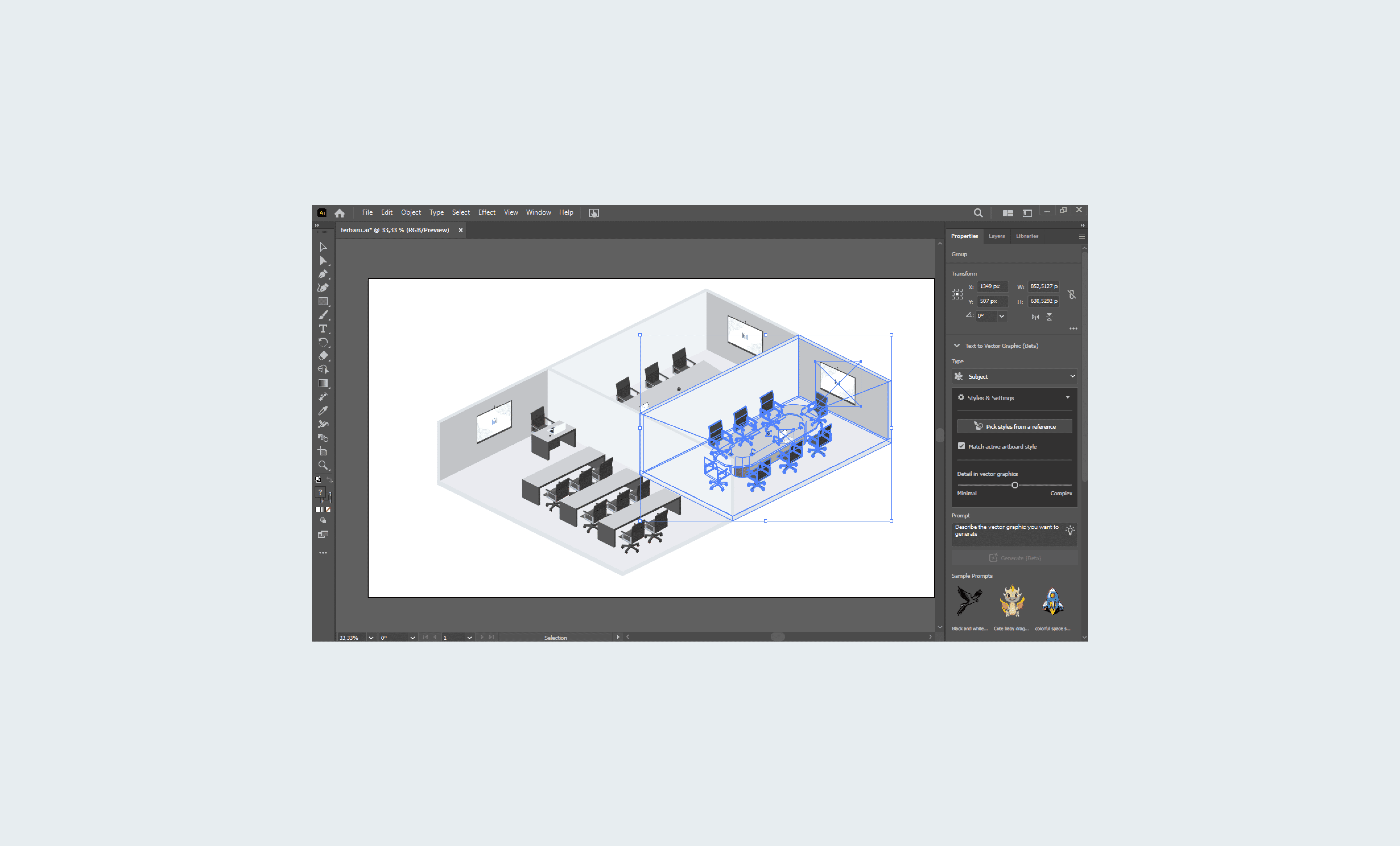Untuk mendukung tampilan prototype yang menarik dan berbeda dari presentasi produk pada umumnya, saya memilih pendekatan visual dengan gaya isometric dengan Adobe Illustrator. Gaya ini dipilih untuk memberikan kesan ruang tiga dimensi yang modern, ringan, dan mudah dipahami.